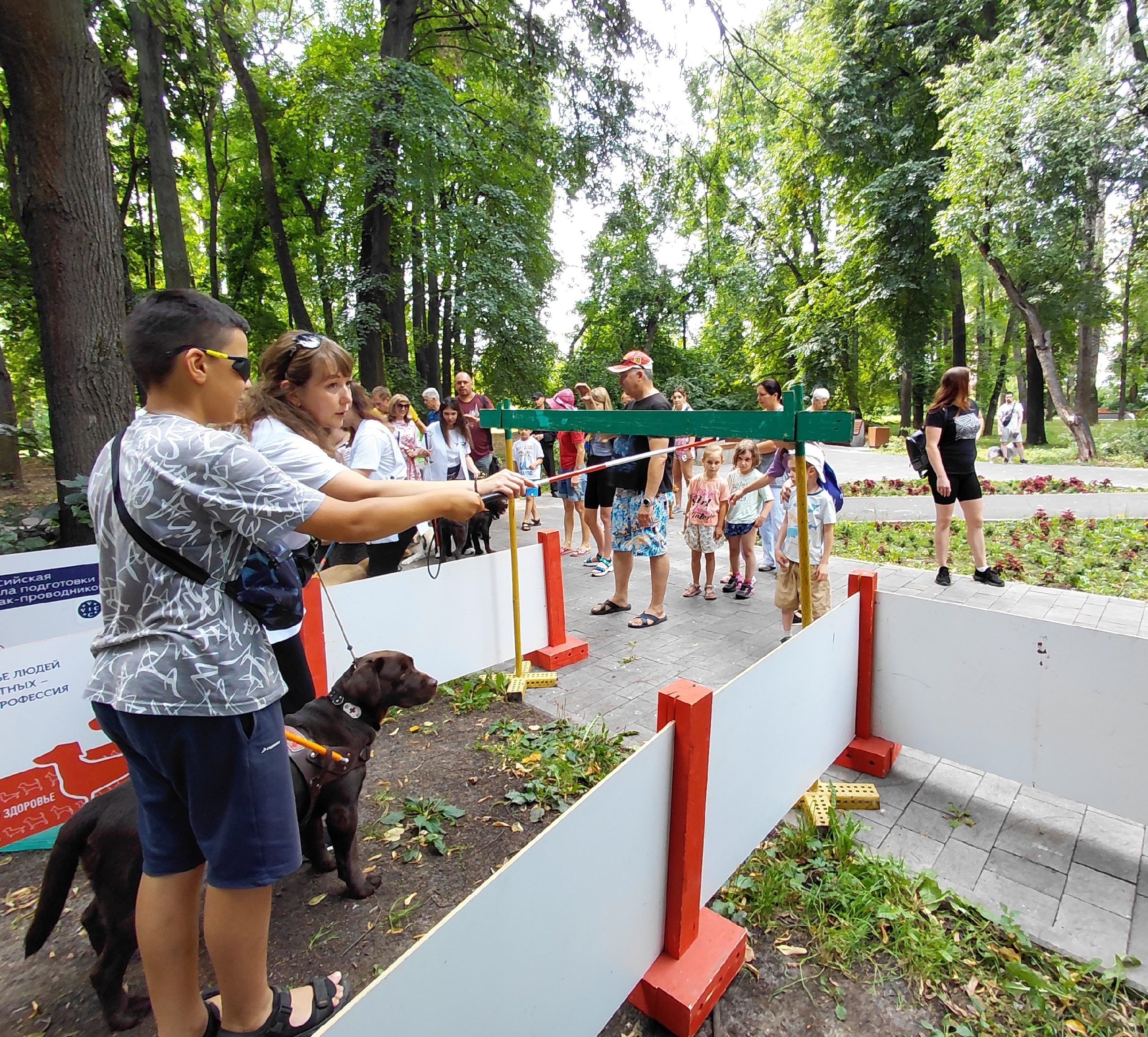 В программе мероприятия были показательные выступления инструкторов с собаками – проводниками, презентация образовательной программы Российской школы подготовки собак- проводников, интерактивный мастер-класс по прохождению полосы препятствий по «городку» в светонепроницаемых очках с собакой-проводником под контролем инструктора-методиста и многое другое.